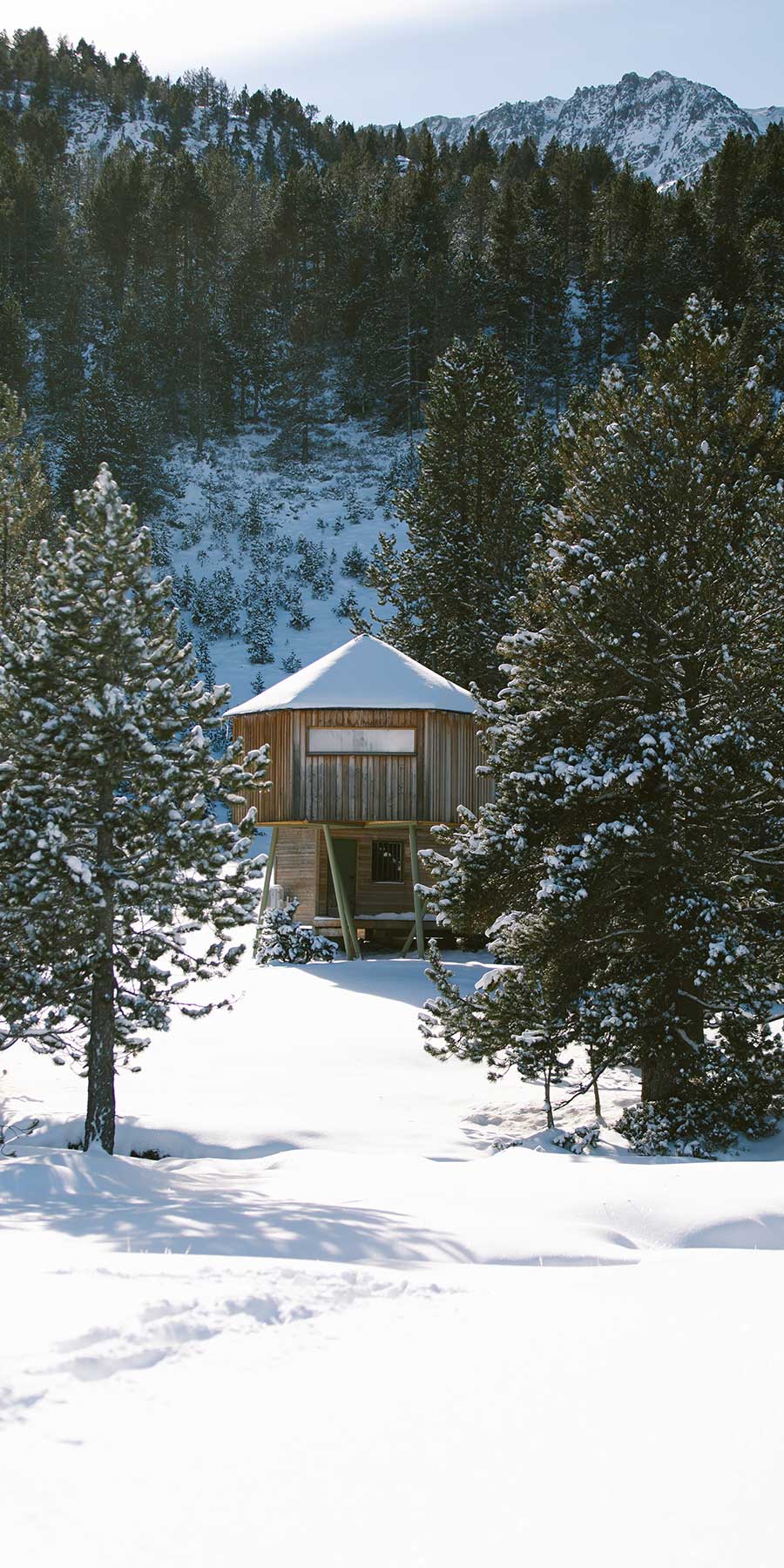 Est une cabane glamping exclusive située au pied des pistes, en pleine nature et au cœur de Grandvalira. Cette cabane en bois chaleureuse, équipée de tout le confort —cuisine, douche, poêle à pellets, wifi et eau chaude— offre un espace intime et agréable pour se déconnecter en haute montagne.